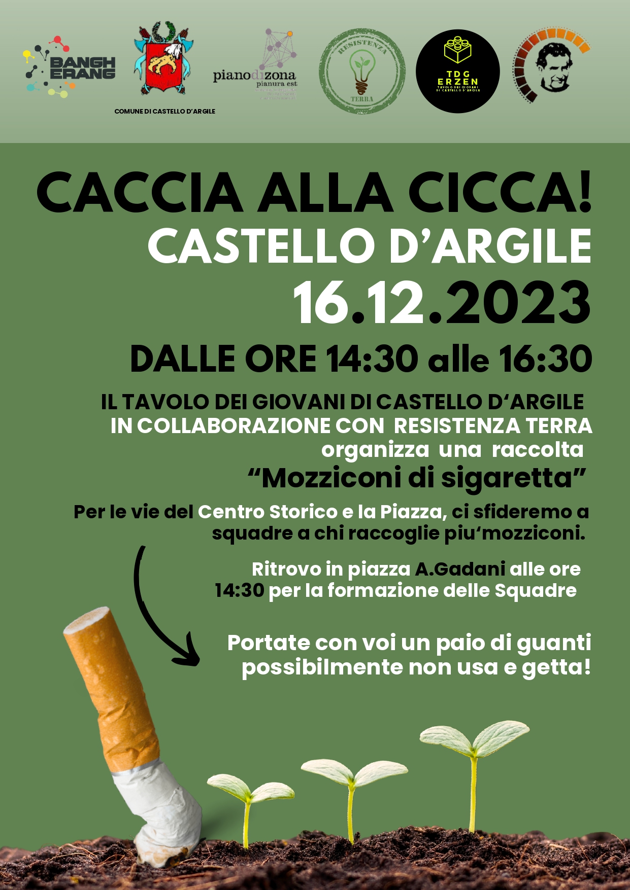 Il Tavolo dei giovani di Castello d'Argile in collaborazione con Resistenza Terra organizza una raccolta "Mozziconi di sigaretta".