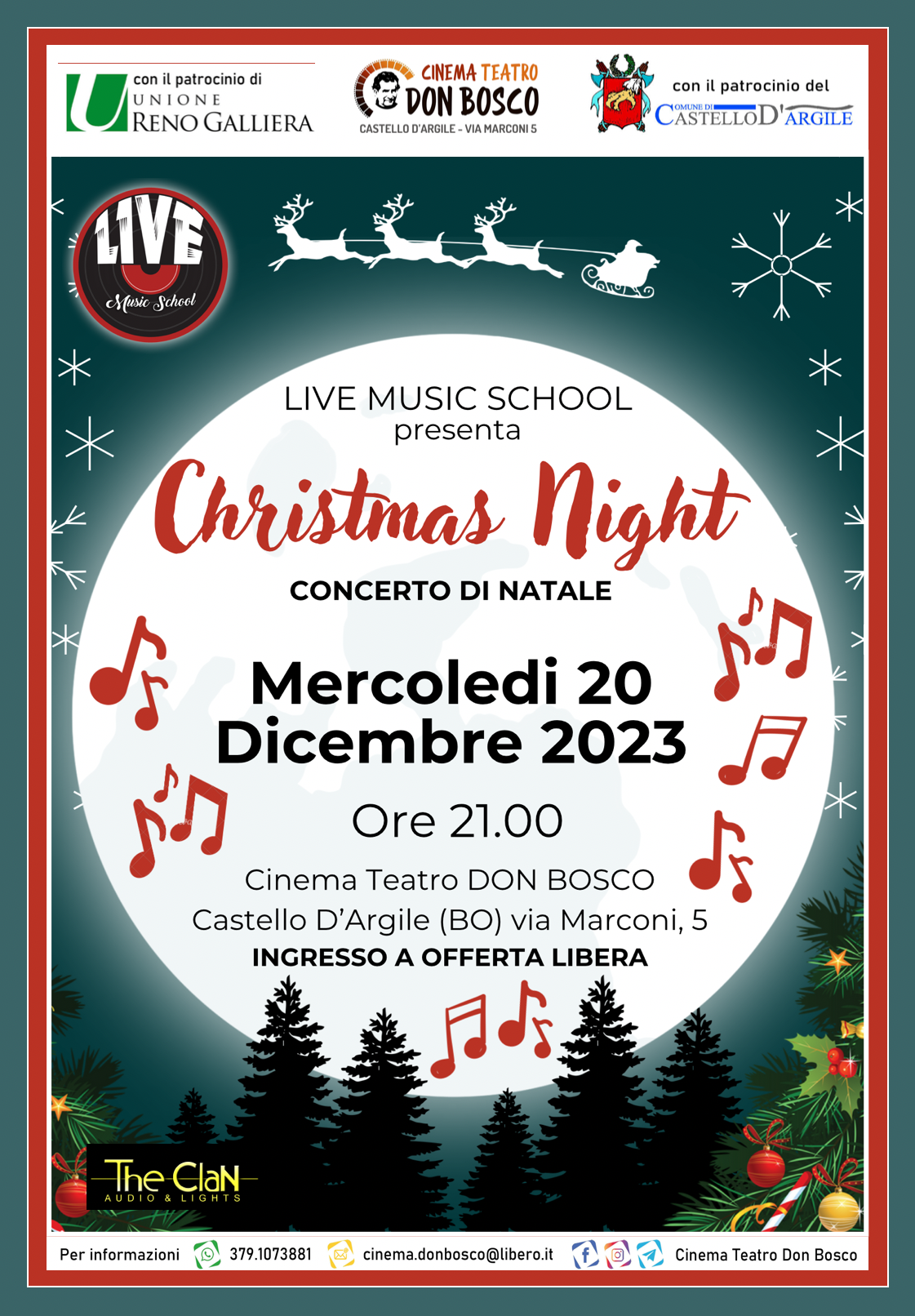 Alle ore 21 presso il Cinema Teatro Don Bosco, Via Marconi 5 a Castello d'Argile, Live Music School presenta Christmas Night, concerto di Natale