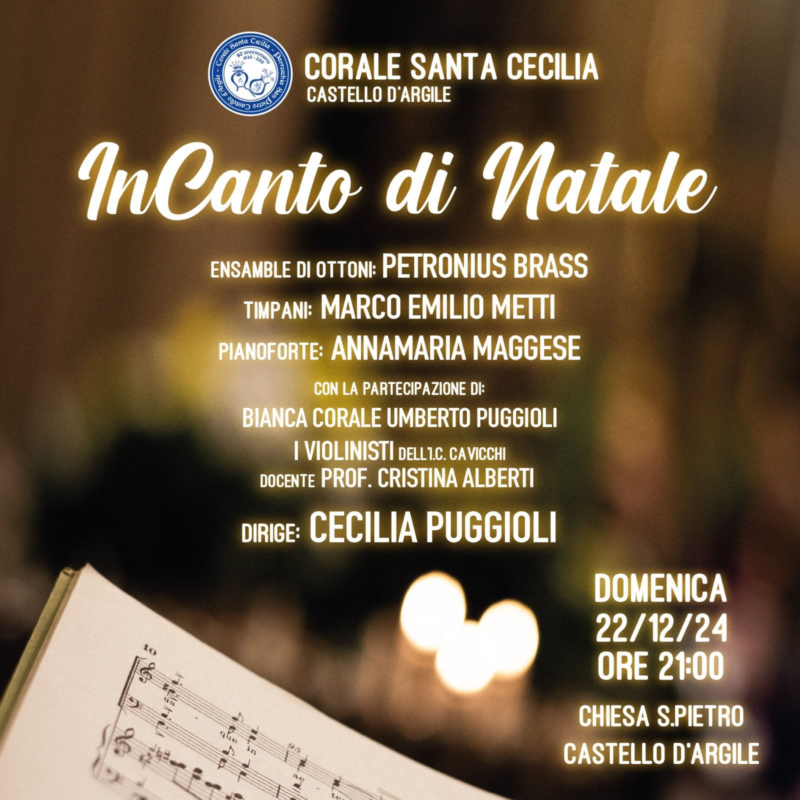 La Corale Santa Cecilia di Castello d'Argile presenta Domenica 22 dicembre 2024 alle ore 21.00 nella Chiesa di San Pietro a Castello d'Argile