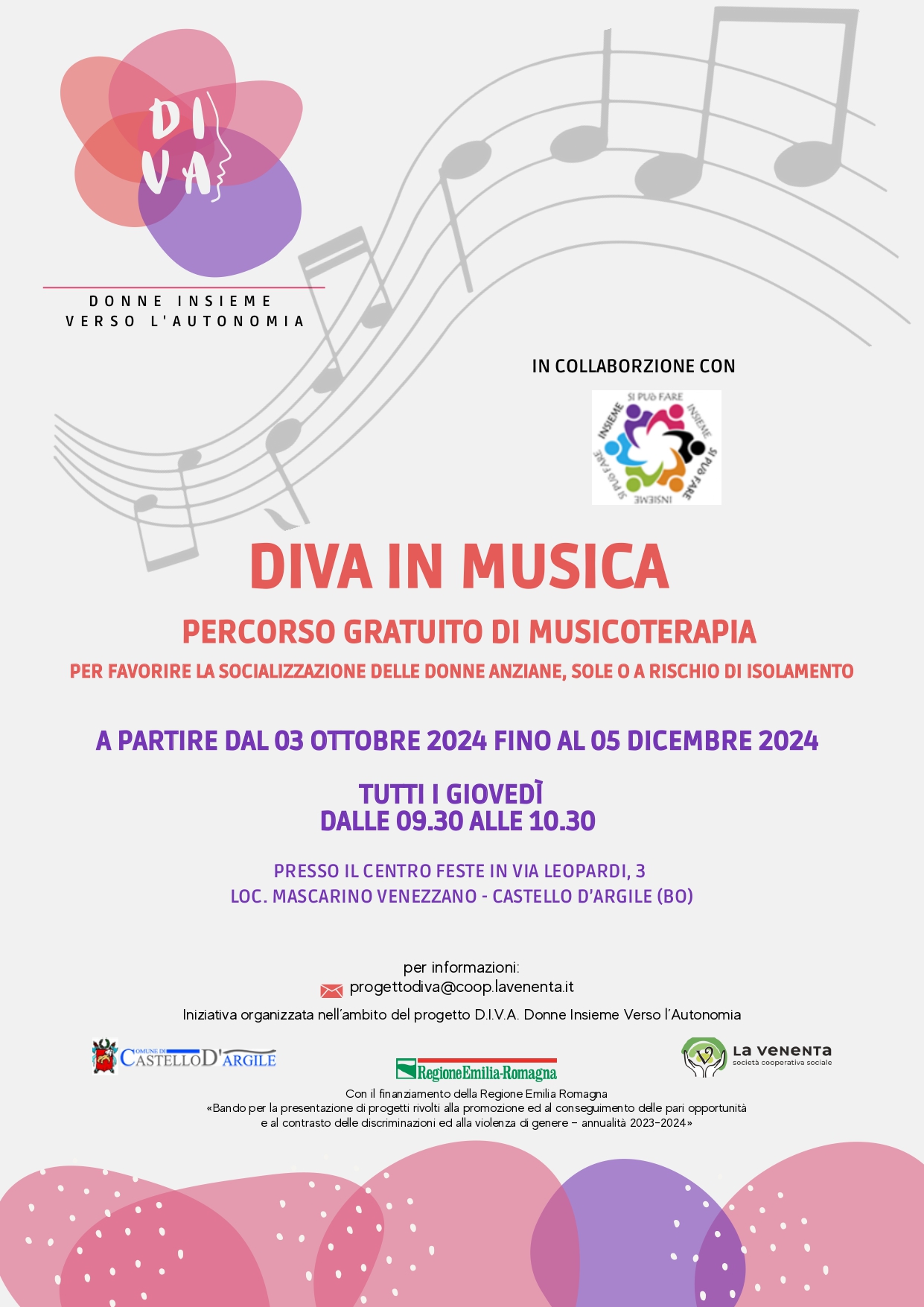 progettodiva@coop.lavenenta.itIniziativa organizzata nell'ambito del progetto D.I.V.A. Donne Insieme Verso l'Autonomia