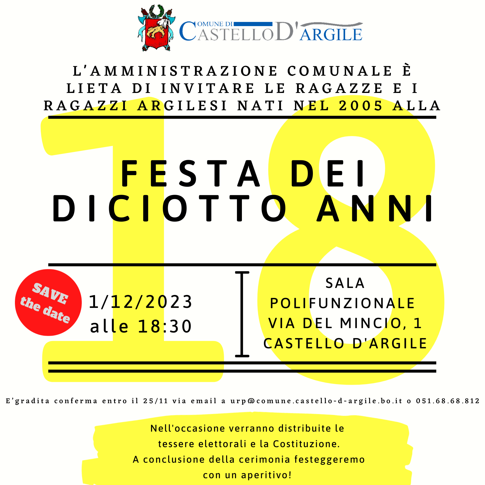 L'Amministrazione Comunale è lieta di invitare le ragazze e i ragazzi argilesi nati nel 2005 alla