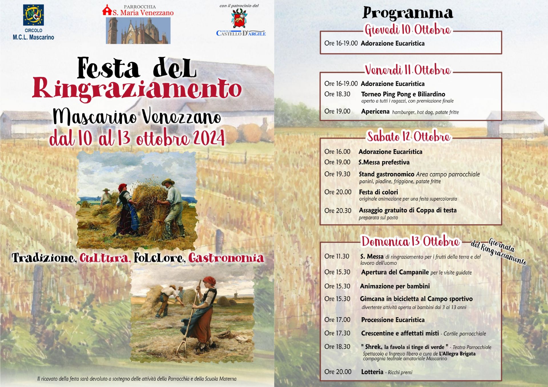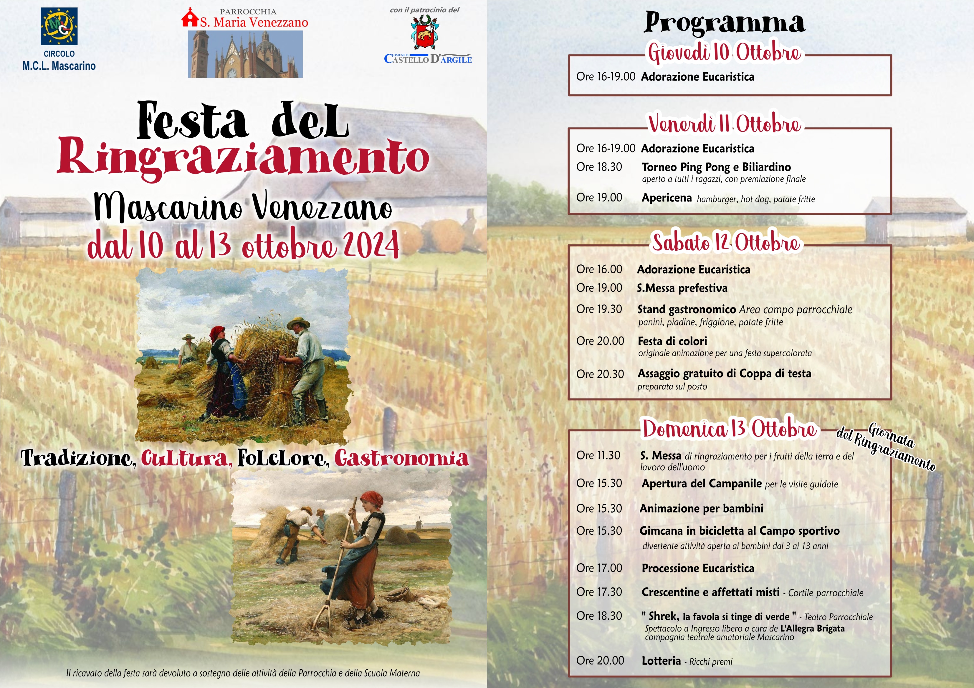 da Giovedì 10 a domenica 13 ottobre 2024 nel Cortile parrocchiale a Mascarino