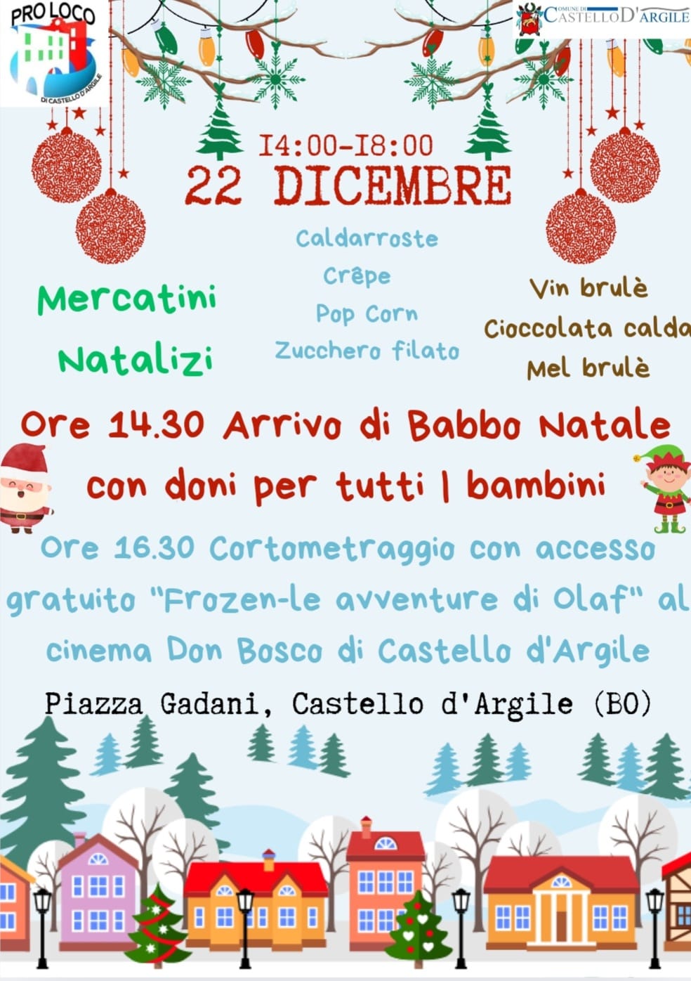 Domenica 22 dicembre dalle 14.00 alle 18.00 in Piazza A. Gadani a Castello d'Argile (BO)