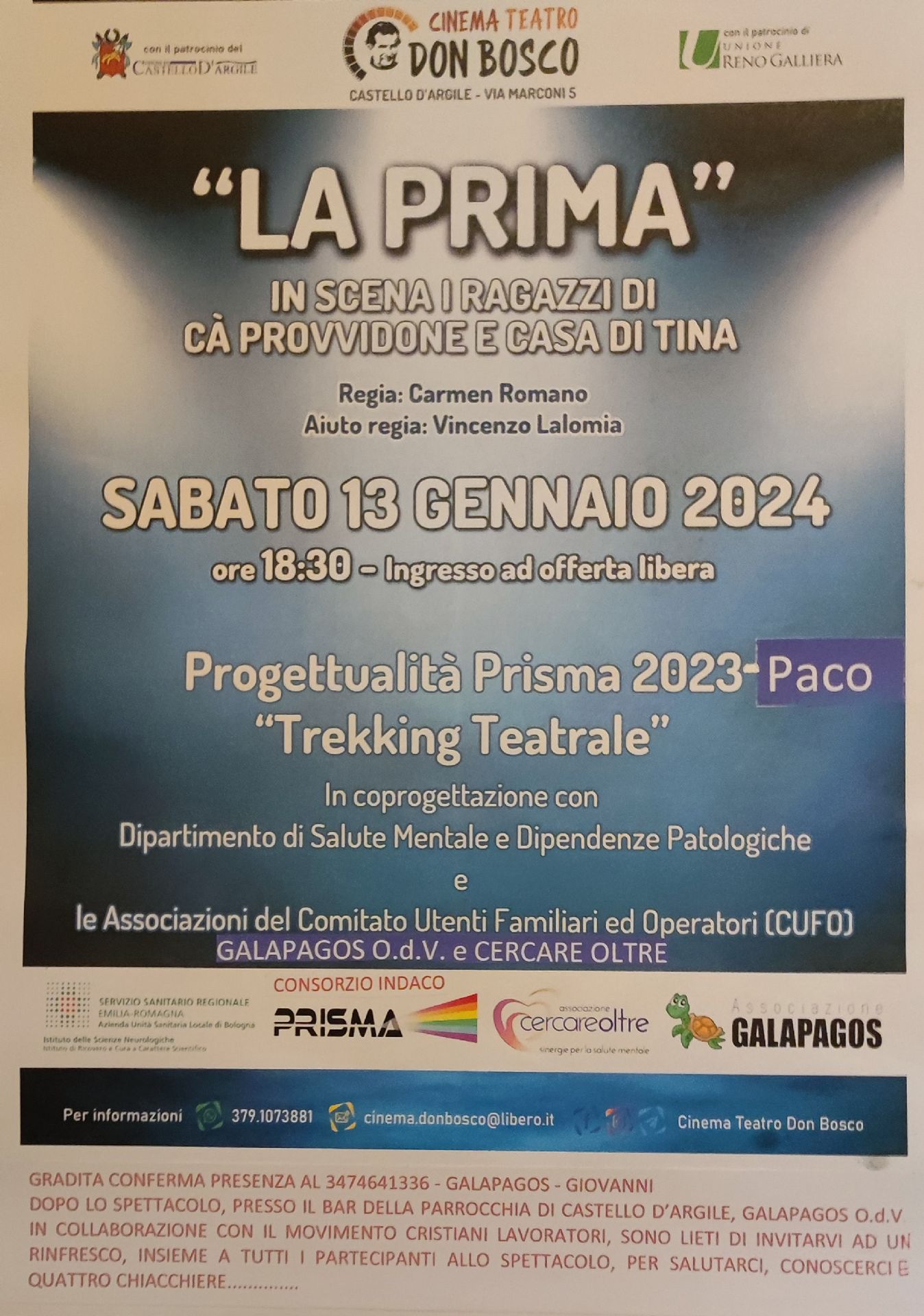 Progettualità Prisma 2023-Paco - Trekking teatrale in coprogettazione con il Dipartimento di Salute Mentale e Dipendenze Patologiche e le Associazioni del Comitato Utenti Familiari ed Operatori (CUFO) Galapagos O.D.V. e Cercare Oltre.