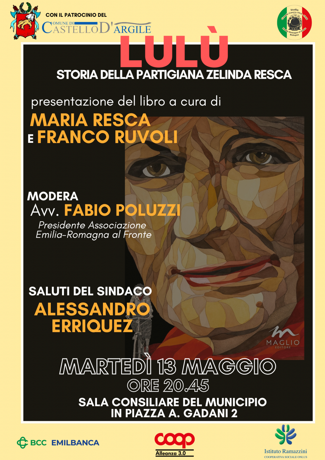 Martedì 13 maggio alle ore 20.45 presso la Sala Consiliare del Municipio in Piazza A. Gadani n.2 presentazione del libro LULU' - Storia della partigiana Zelinda Resca a cura di Maria Resca e Franco Ruvoli.