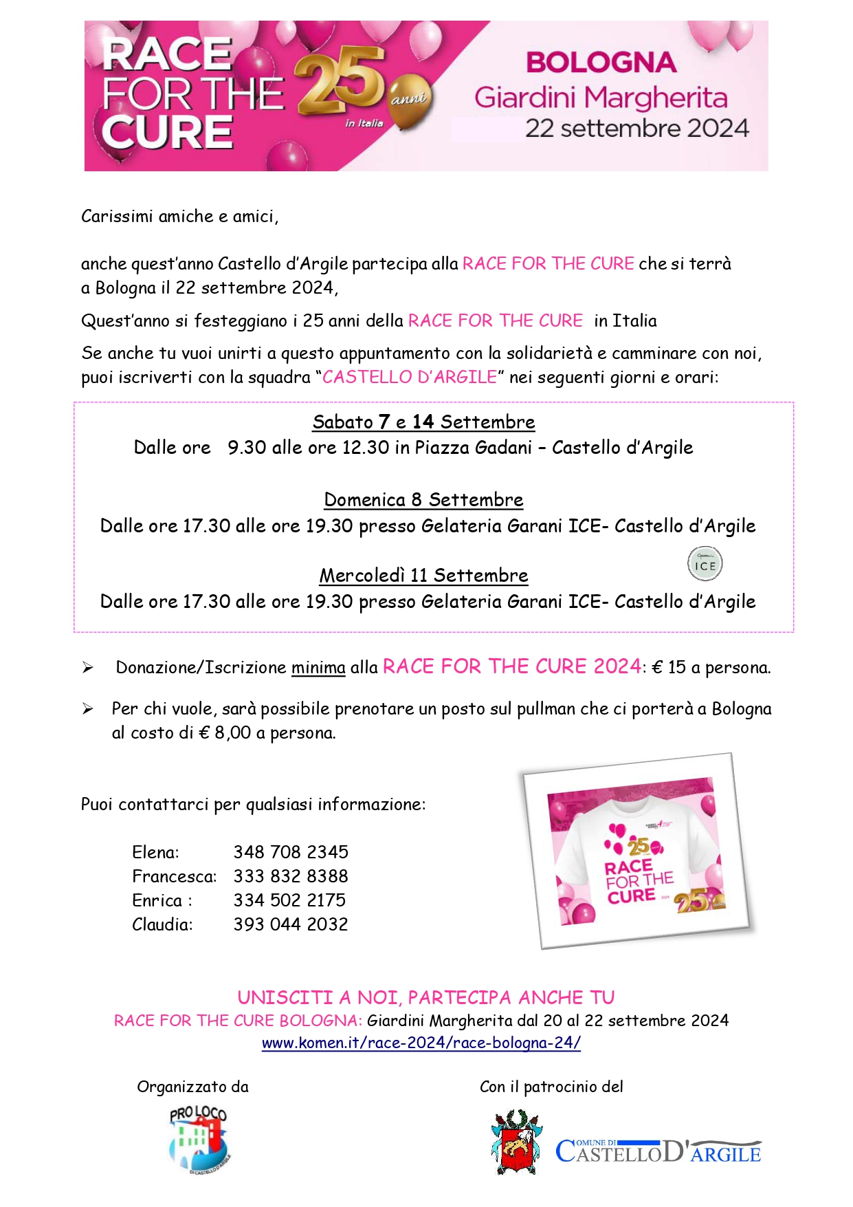 Donazione/Iscrizione minima alla RACE FOR THE CURE 2024: €15,00 a persona.
