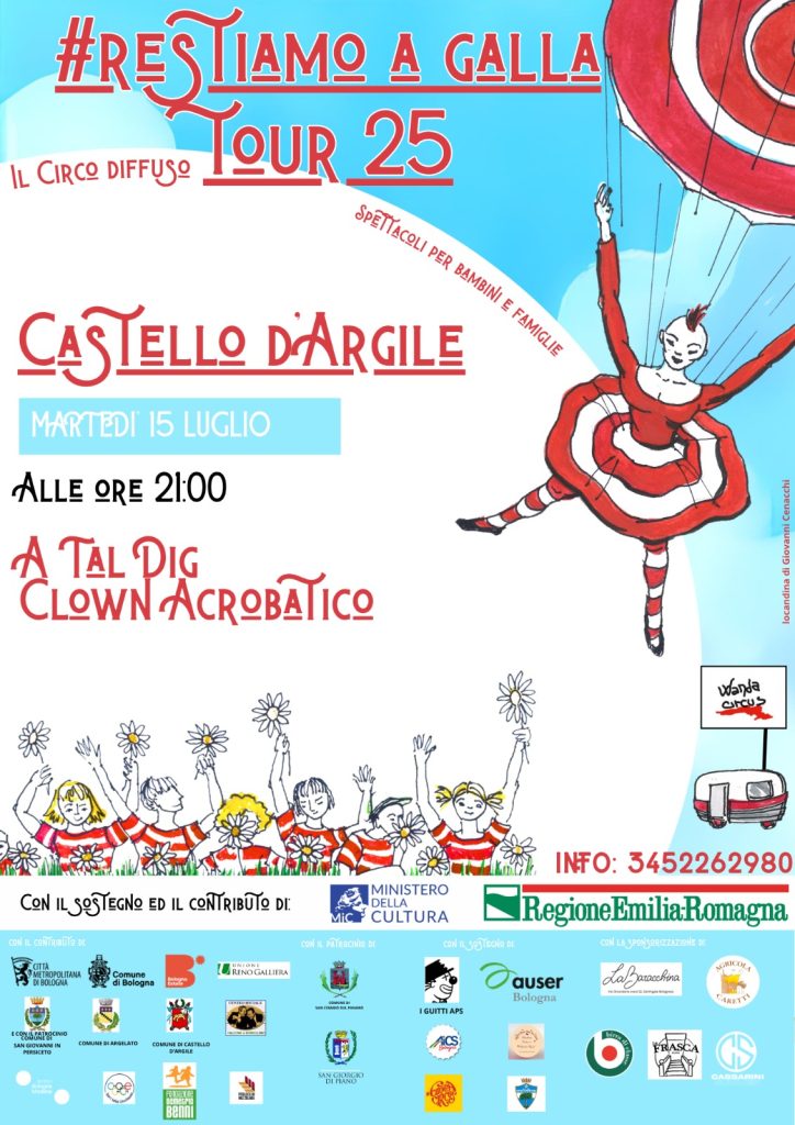 E’ tornato il #RESTIAMOAGALLATOUR25, il circo diffuso! MARTEDI' 15 LUGLIO alle ore 21.00 in PIAZZA A. GADANI a Castello d’Argile!