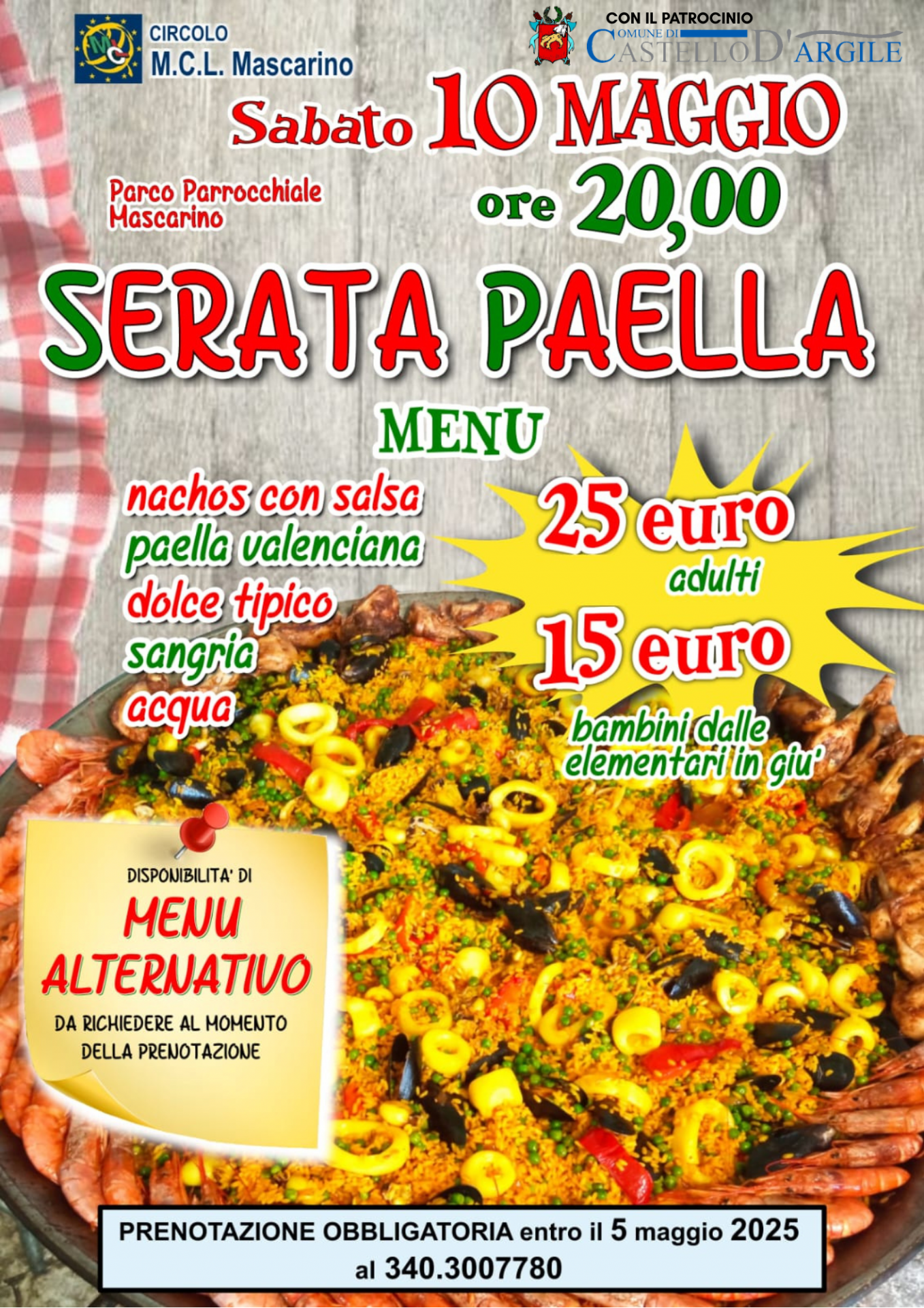 !! Prenotazione obbligatoria entro il 5 maggio 2025 al numero 340/3007780 !!