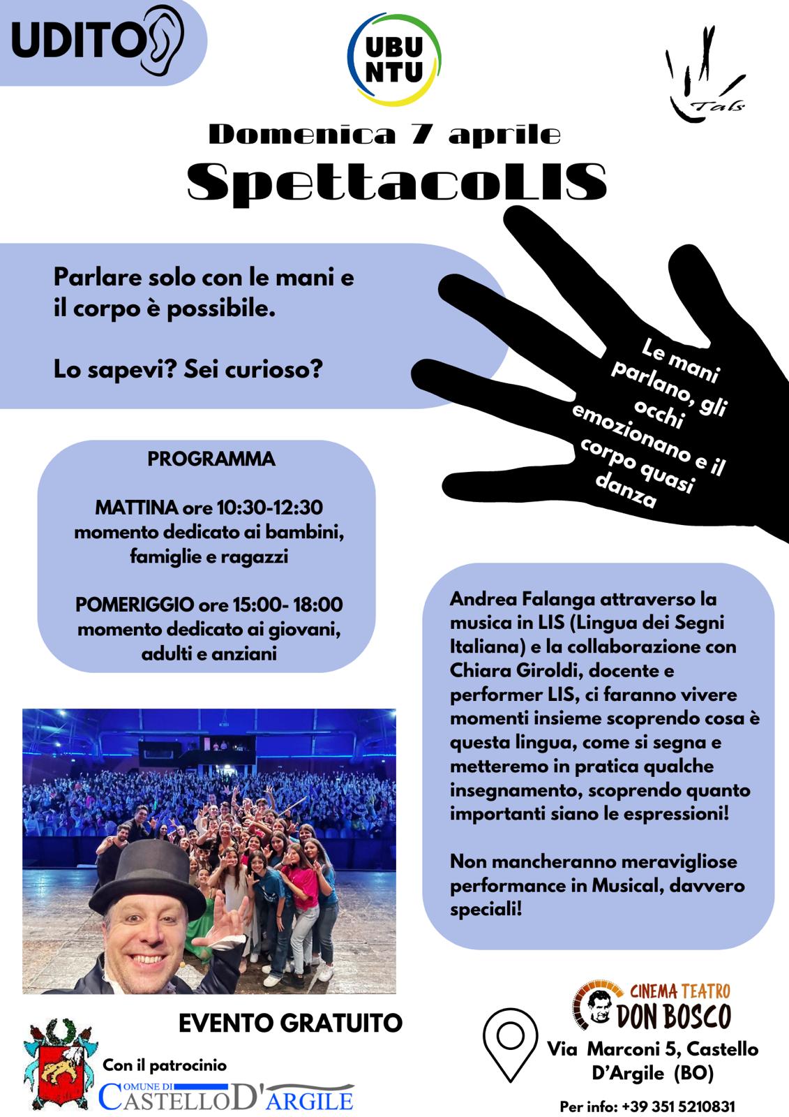 Andrea Falanga attraverso la musica in LIS (Lingua dei Segni Italiana) e la collaborazione con Chiara Giroldi, docente e performer LIS, ci faranno vivere momenti insieme scoprendo cos'è questa lingua, come si segna e metteremo in pratica qualche insegnamento scoprendo quanto importanti siano le espressioni!