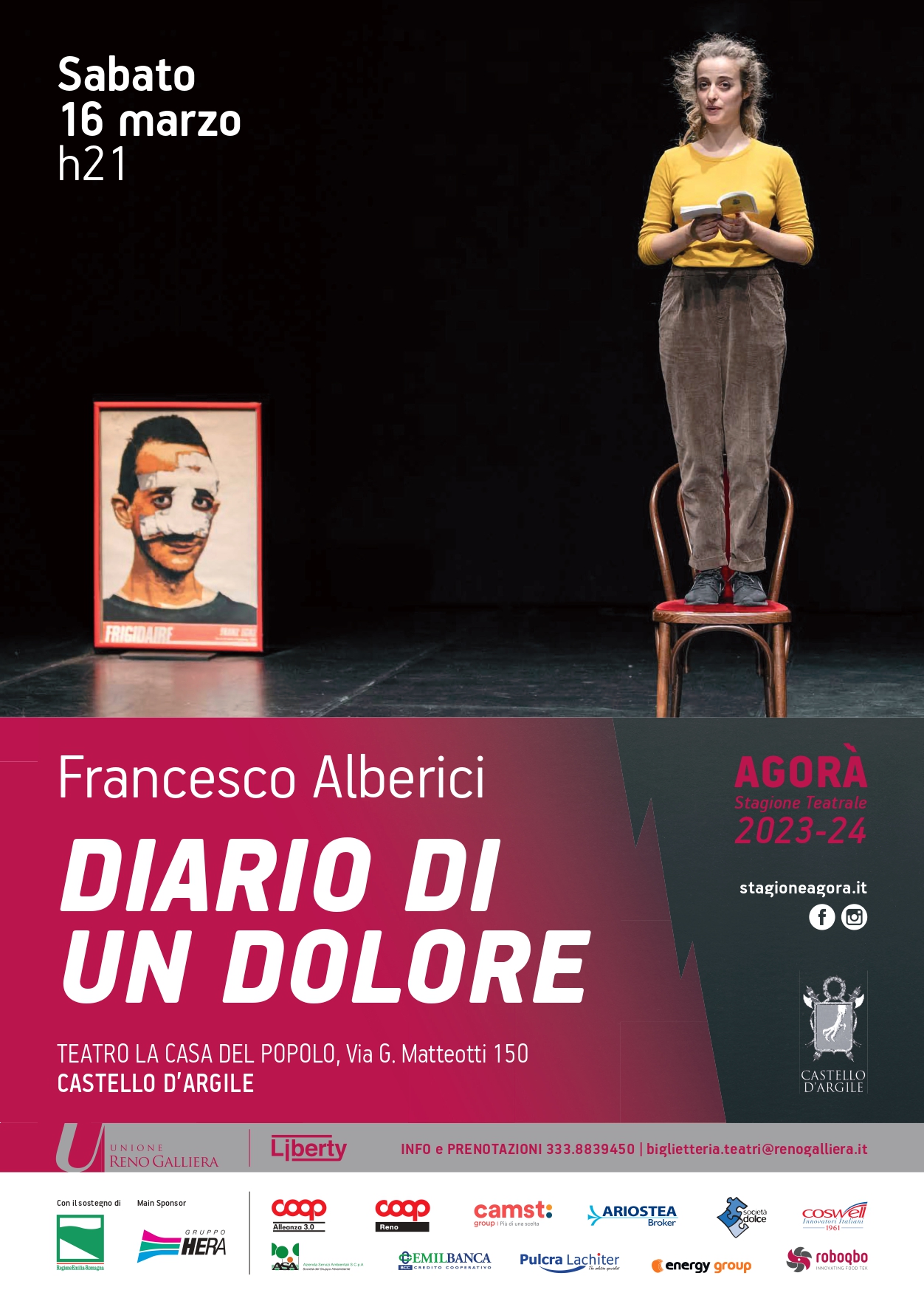 SABATO 16 MARZO alle ore 21.00 presso il Teatro Casa del Popolo in via G. Matteotti 150 a Castello d'Argile