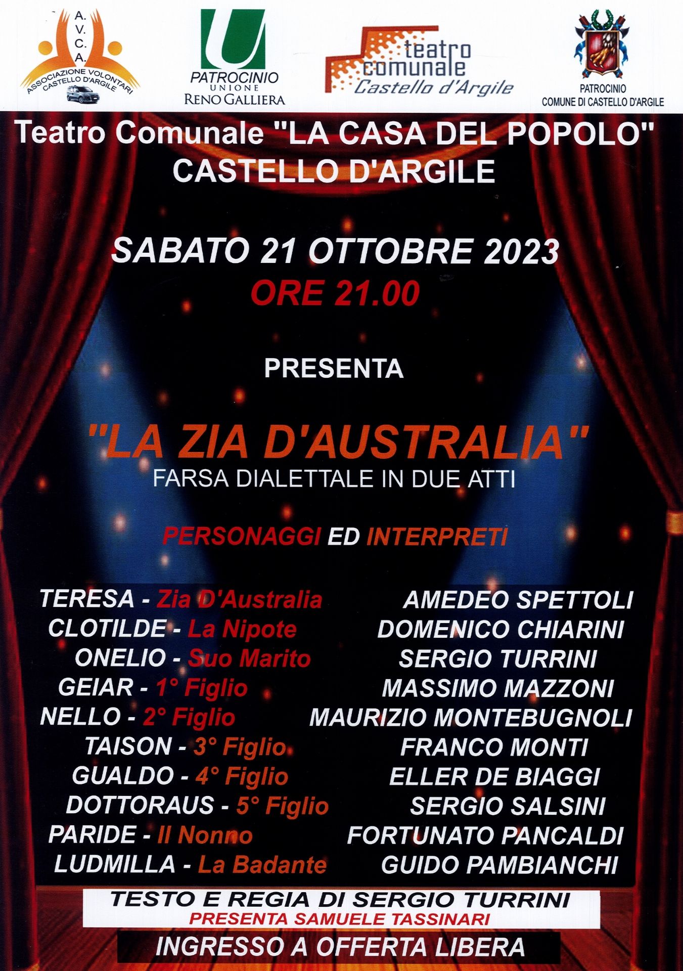 Alle ore 21.00 presso il Teatro Comunale "La Casa del Popolo" a Castello d'Argile