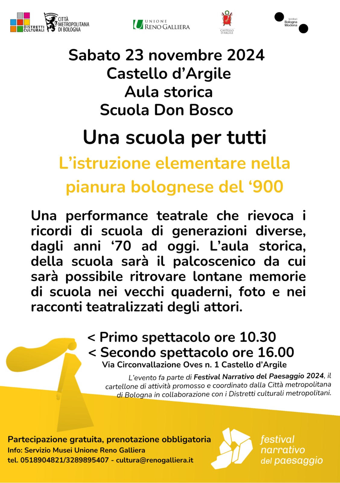 L'evento fa parte di FESTIVAL NARRATIVO DEL PAESAGGIO 2024, il cartellone di attività promosso e coordinato dalla Città metropolitana di Bologna in collaborazione con i Distretti culturali metropolitani.