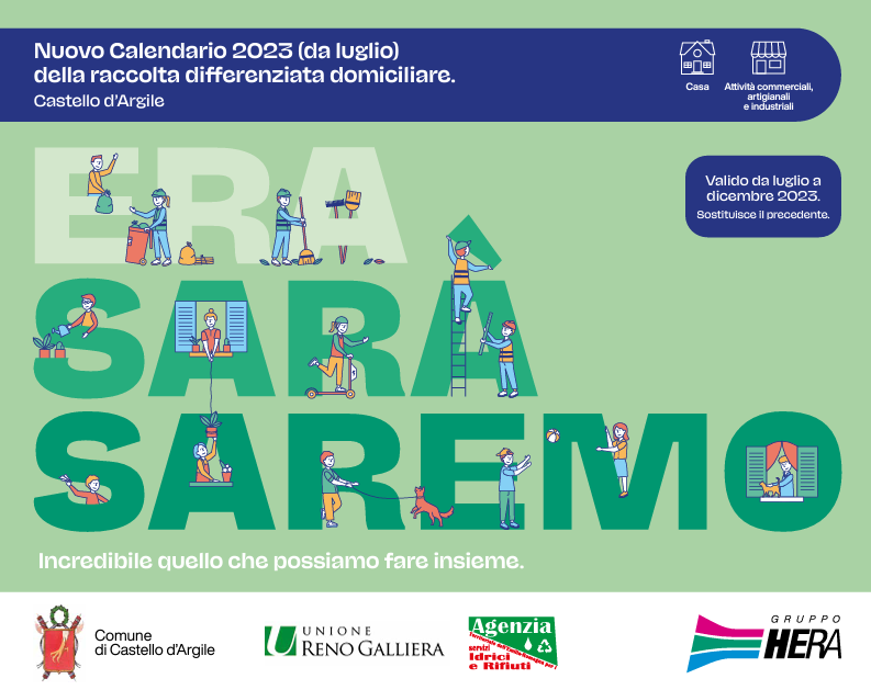 Si informa la cittadinanza che nel Comune di Castello d'Argile dal 1 Luglio 2023 il servizio di raccolta rifiuti sarà modificato al fine di adeguarsi ai nuovi standard regionali.